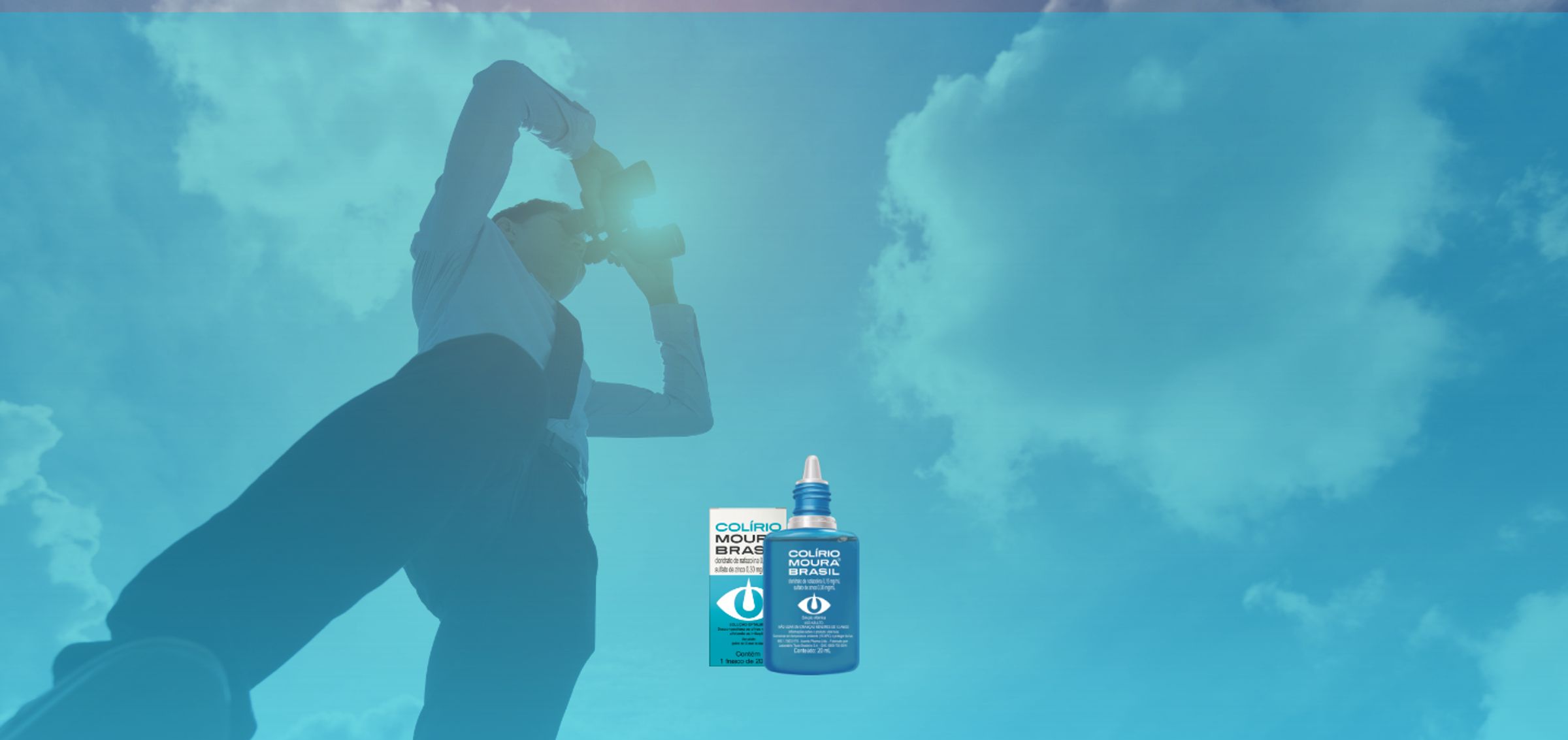 MAT-BR-2106058 - Setembro 2021. COLÍRIO MOURA® BRASIL (cloridrato de nafazolina, sulfato de zinco heptaidratado). Indicações: irritações oculares (poeira, vento, calor, fumaça, gases irritantes, luz e corpos estranhos). MS 1.8326.0307. O USO DO MEDICAMENTO PODE TRAZER ALGUNS RISCOS. Leia atentamente a bula. SE PERSISTIREM OS SINTOMAS, O MÉDICO DEVERÁ SER CONSULTADO.